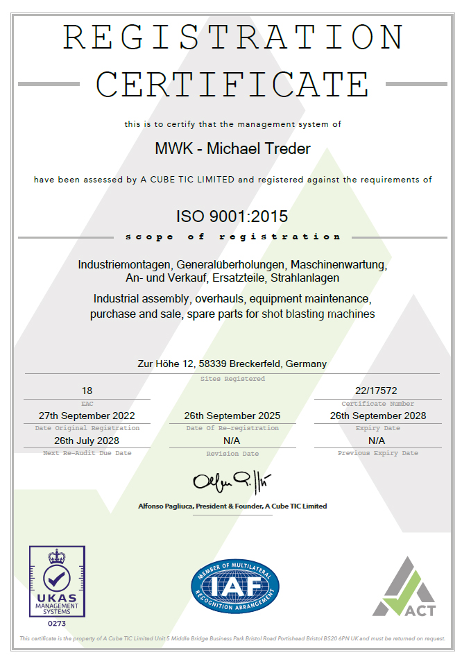 Regelmäßige Instandhaltung- und Wartungsintervalle für Ihre Strahlanlage bringen Sie immer wieder über die Ziellinie.